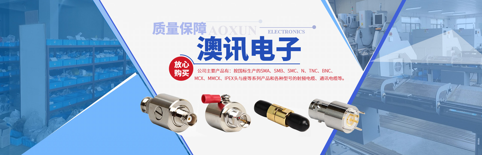 鎮江市澳訊電子科技有限公司,占地面積5000平方米,現有員工近百名,各類技術人員占15%。我公司專業從事射頻同軸連接器的設計、研制、開發、生產、銷售。